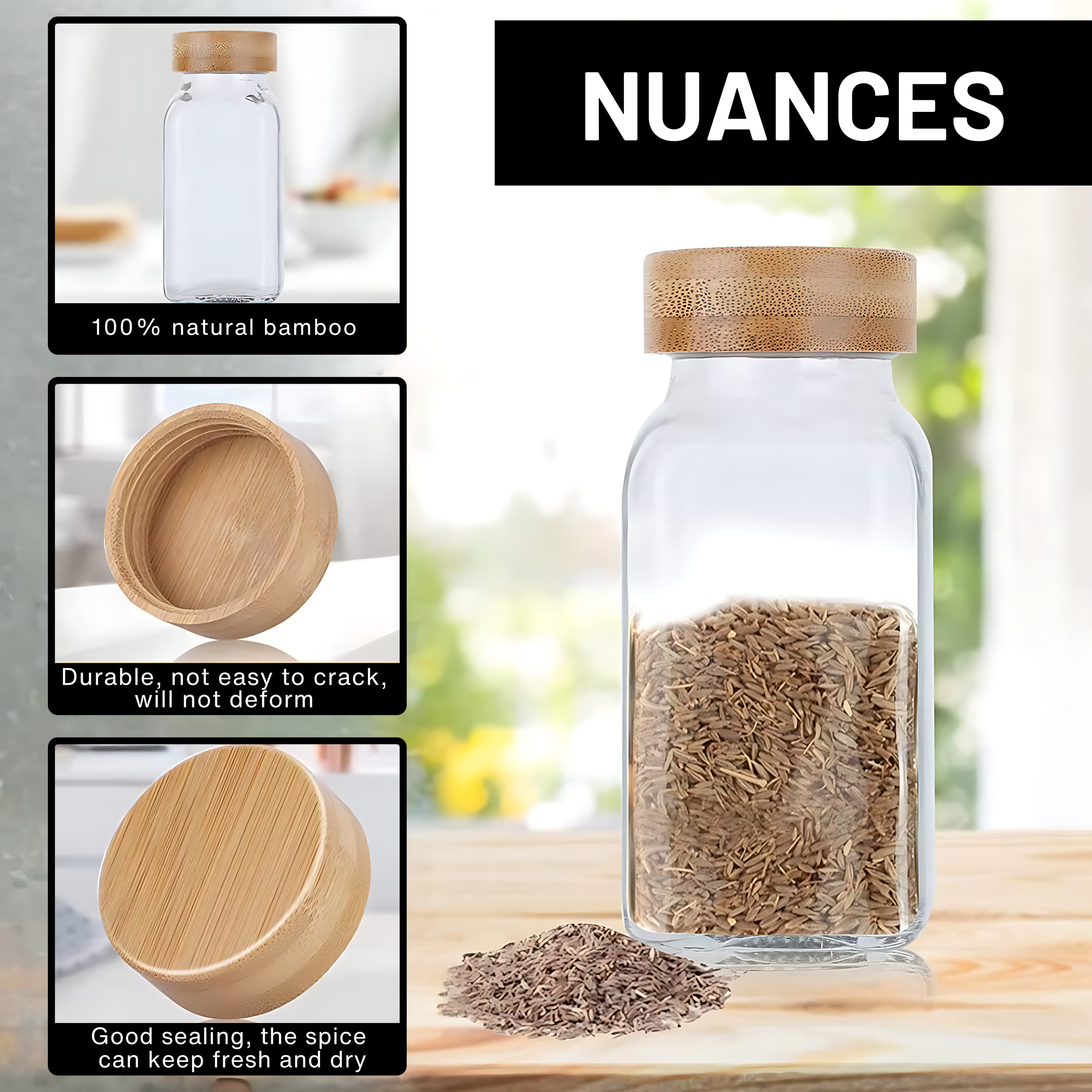 - Airtight Seal: Bamboo lids with silicone gaskets keep spices fresh and flavorful.