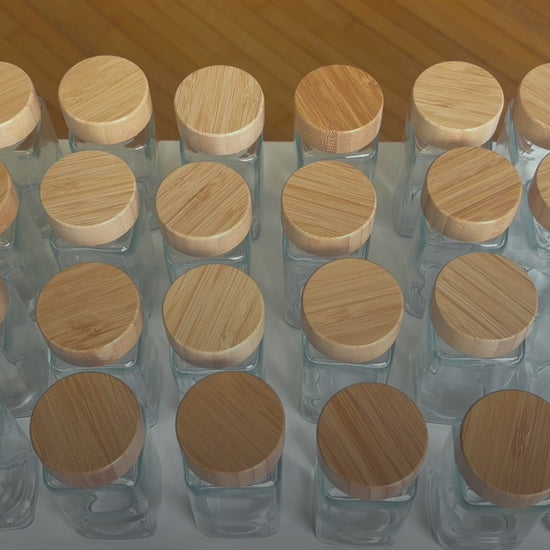 Square Glass Spice Containers with Bamboo Lids