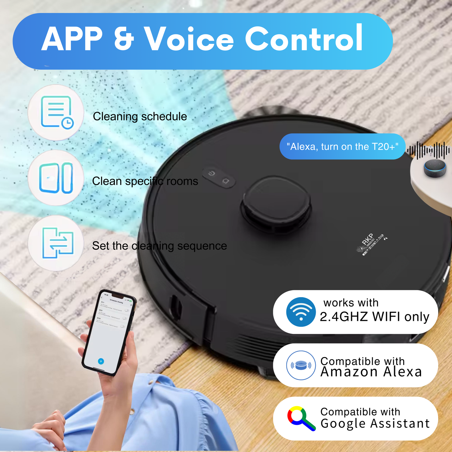 This app-controlled 2.0 RKP X6 provides a suite of features for effortless and personalized cleaning experiences. Compatible with popular smart home systems like Alexa and Google Assistant, it seamlessly integrates into your home ecosystem. You can manage home from creating a home environment to adding family members for shared control. Schedule cleaning sessions based on your routine, ensuring a clean home even when you're away. Assign specific tasks to different rooms and define restricted areas where cleaning is not required. Customize cleaning preferences, including mode selection and suction power. The app also offers detailed consumables management, allowing you to monitor accessory lifespan.