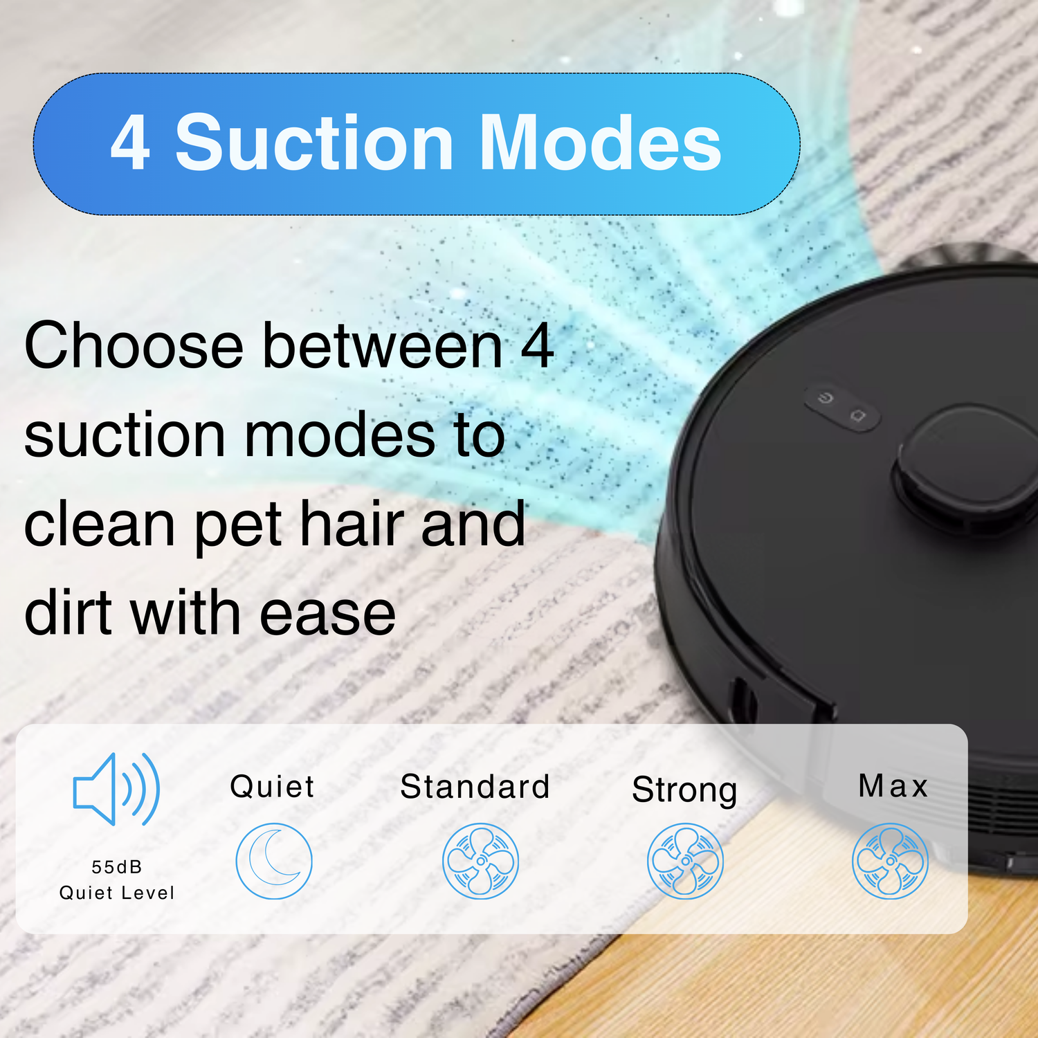 2.0 RKP X6 boasting a suction power of 4000Pa represents a remarkable advancement in cleaning efficiency. With such immense suction capability, it can effortlessly lift dirt, debris, and even larger particles from various surfaces with unprecedented force. This level of suction power ensures thorough cleaning across carpets, hardwood floors, and other surfaces, leaving no traces of dirt or dust behind. Additionally, it enables the robot vacuum to tackle tough cleaning tasks, such as pet hair removal and deep-seated dirt extraction, with exceptional effectiveness.