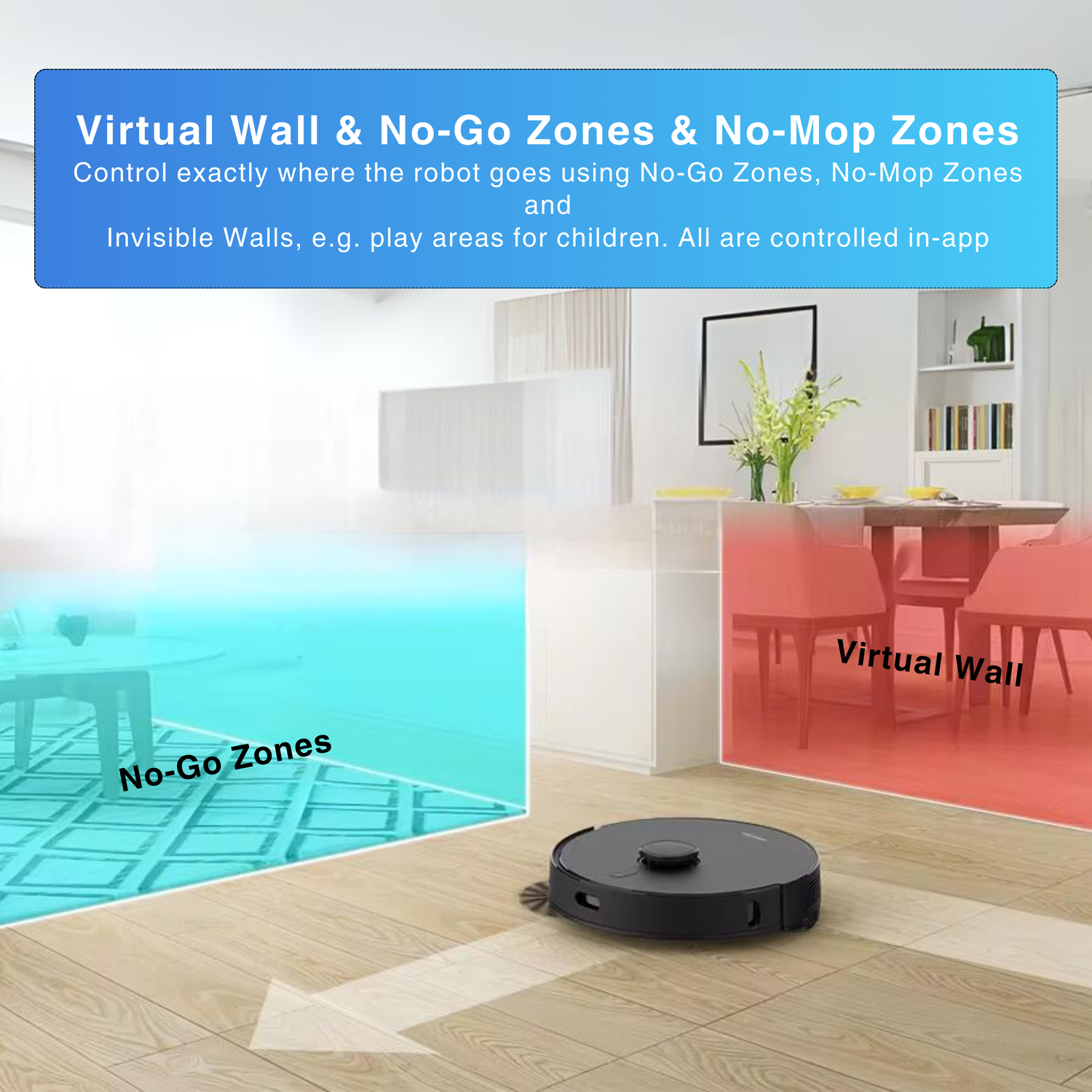 With the 2.0 RKP X6 Robot Vacuum Cleaner, you’re in complete control of where it cleans. The Virtual Wall and No-Go Zones features allow you to easily create invisible boundaries that the vacuum won't cross, keeping it away from areas you want to protect. Whether it's avoiding delicate furniture, staying clear of your pet's space, or steering clear of children's play areas, this feature lets you customize your cleaning experience. Plus, with the No-Mop Zones, you can ensure that your robot only mops the surfaces you choose, leaving carpets and rugs perfectly dry. Enjoy precision cleaning that fits seamlessly into your lifestyle.